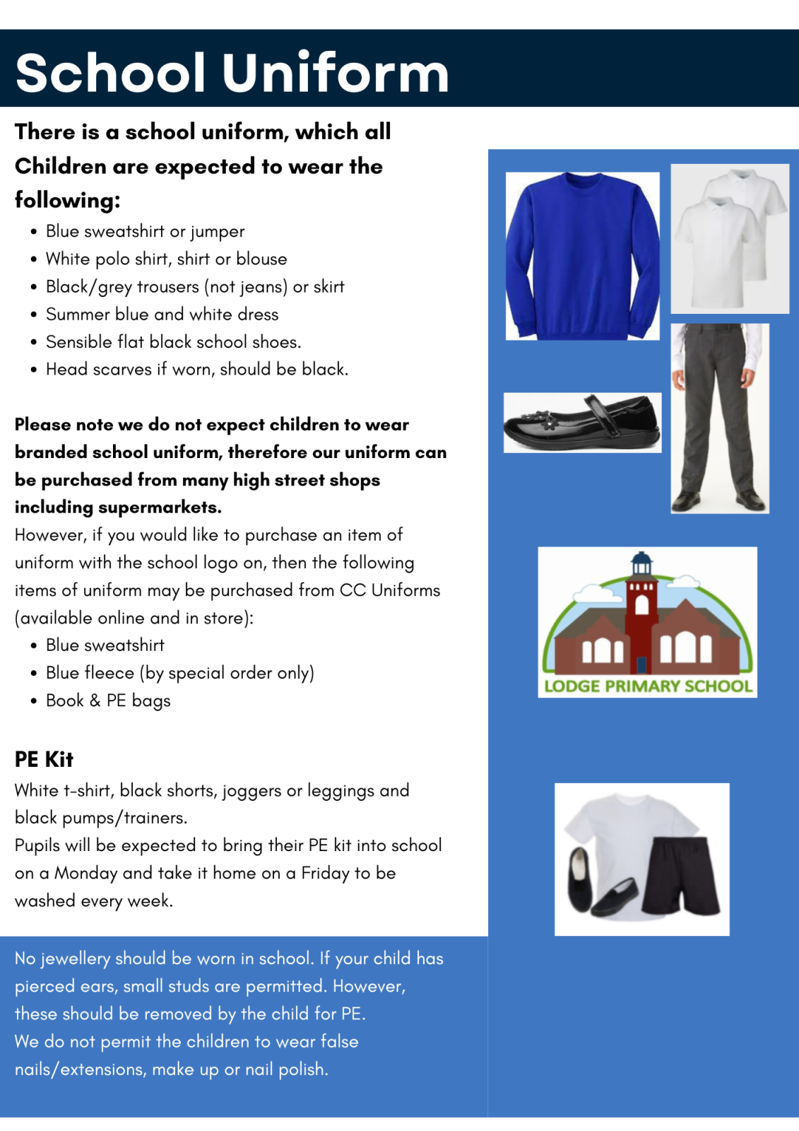 Please note: School uniform cannot be purchased from the school office.